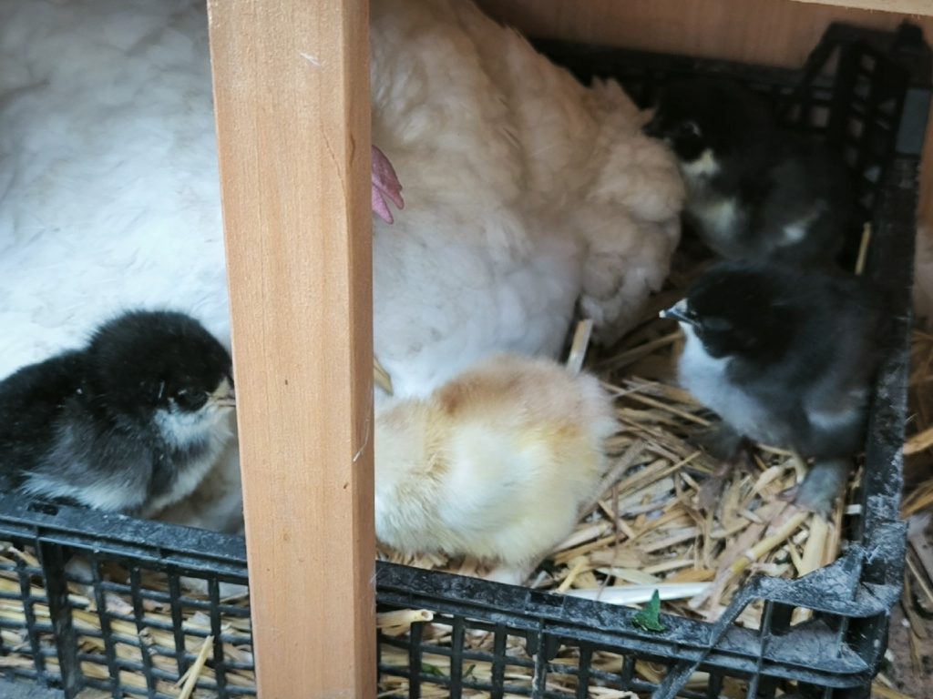 Nach 21 Tagen war das Wunder geschehen- 4 kleine Lebewesen pickten sich aus ihren Eiern. Wir hatten tatsächlich zum ersten Mal Küken.
